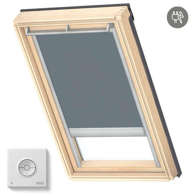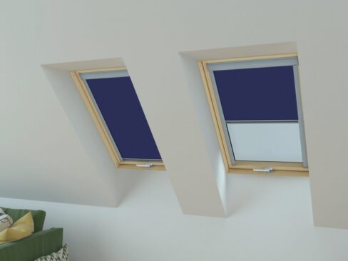- Roleta plisowana elektryczna VELUX FML – pozwala na zdalne sterowanie, idealna do trudno dostępnych okien.